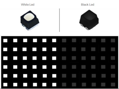 تُستخدم مصابيح LED البيضاء للجيل الأول من شاشات LED ، ولكن في الوقت الحاضر تستخدم المزيد والمزيد من شاشات LED المصابيح السوداء ، نظرًا لوجود عدد قليل جدًا من مزايا مصابيح LED السوداء على تلك البيضاء.